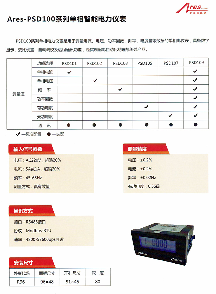 产品名称:Ares-PSD100系列单相智能电力仪表 产品编号: