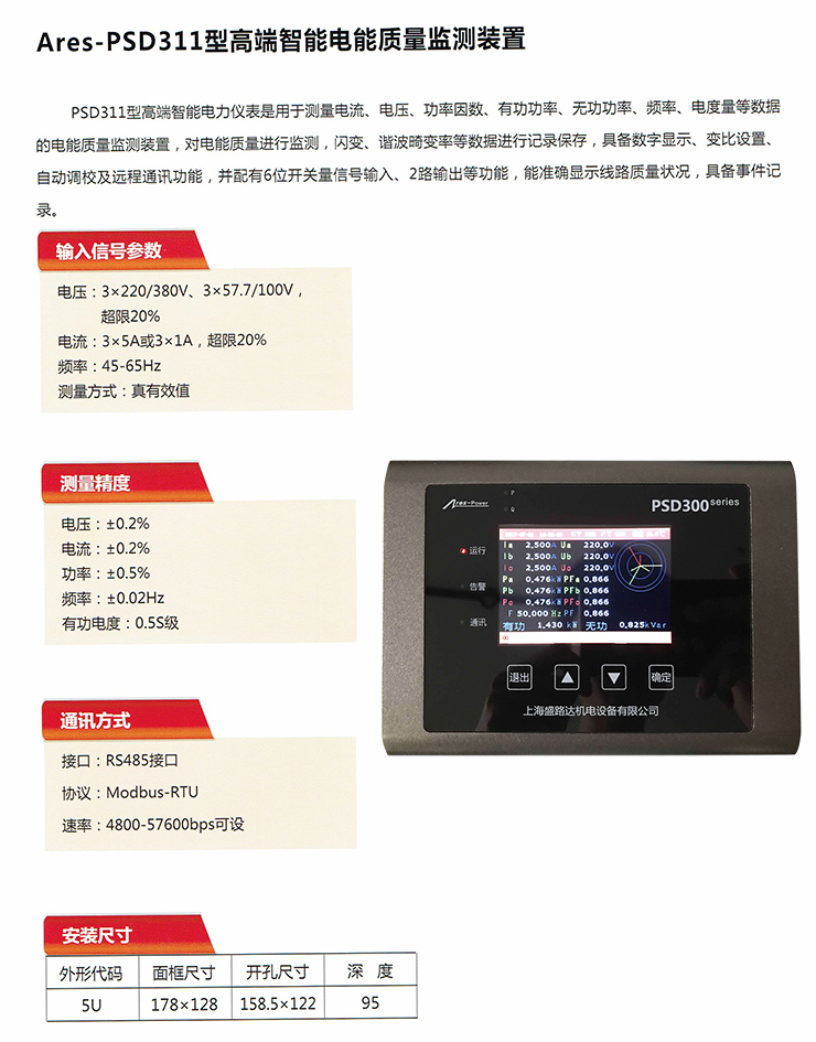 产品名称:Ares-PSD311型高端智能电能质量监测装置 产品编号: