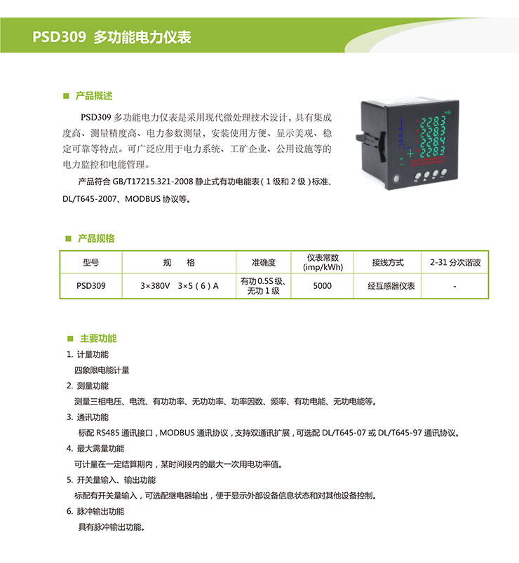 产品名称:PSD309多功能电力仪表 产品编号:PSD309