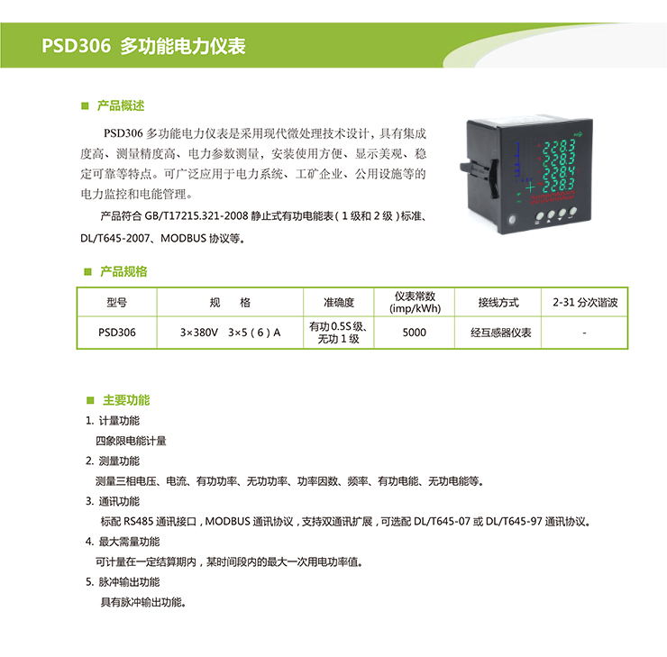 产品名称:PSD306多功能电力仪表 产品编号:PSD306